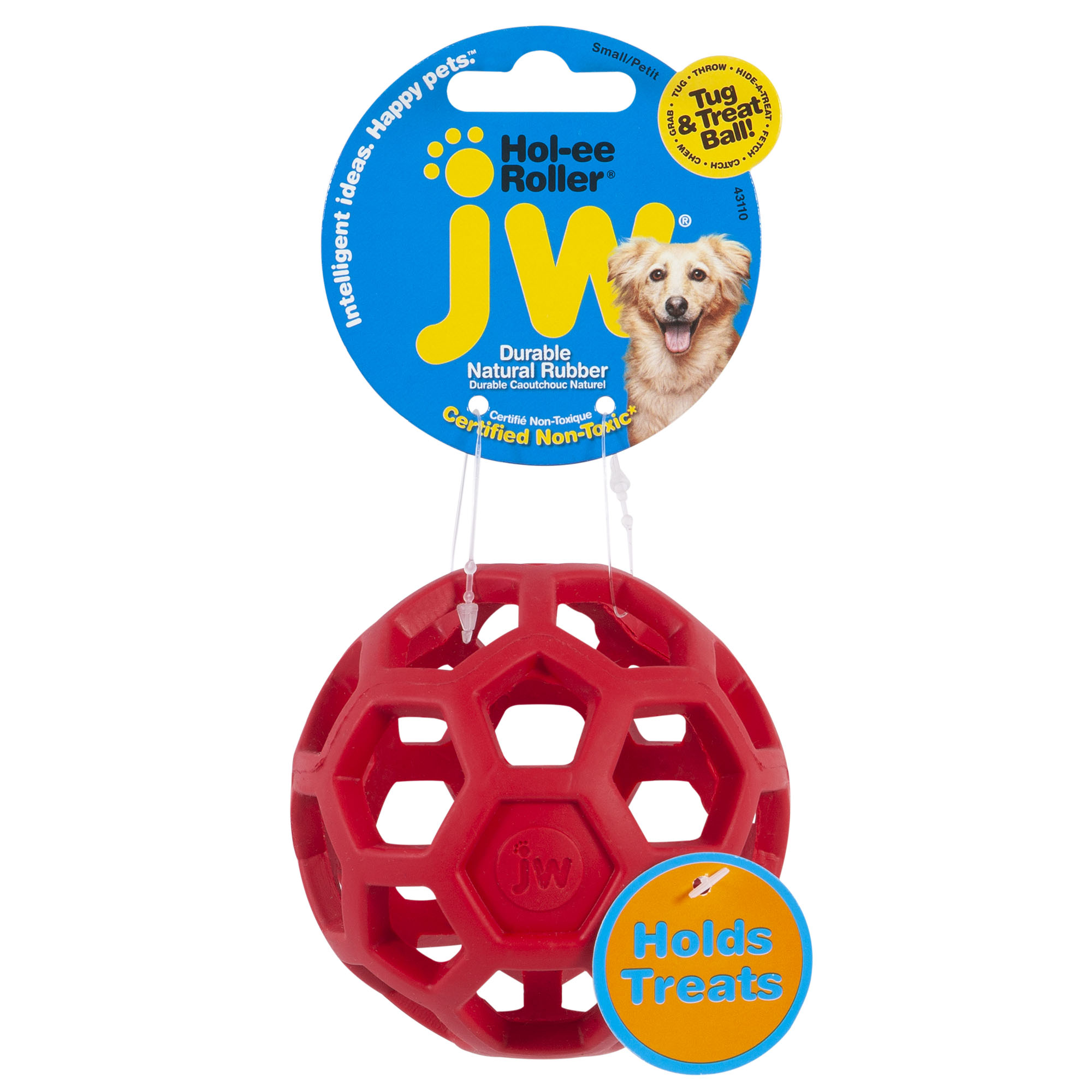 Las aberturas en cada lado permiten que el juguete se use también como una bola de golosinas